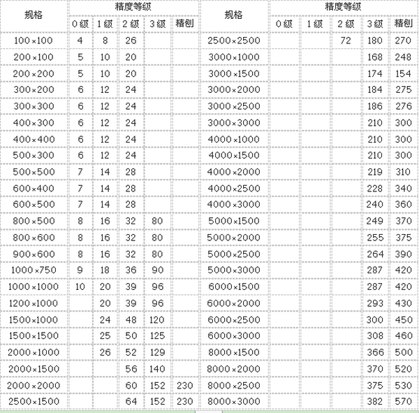 劃線平板精度:按**標準計量檢定規程執行,分別為0、1、2、3四個等級。