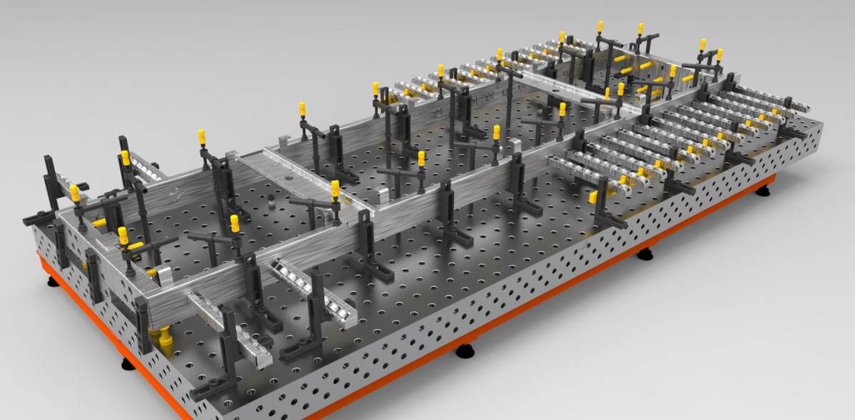 焊接工作臺是一種集焊接、裝配、檢驗為一體的新型環寶先進的柔性焊接工藝裝備。它具有三維柔性組合焊接工裝夾具同樣的互換性,通用性,經濟性等優點;與普通鑄鐵焊接平臺平板對比可以提高工作效率,節省原材料,節省資金;使用過程中可選擇多樣式的三維組合標準夾具配件進行夾緊定位加工作業,操作簡單、使用方便。