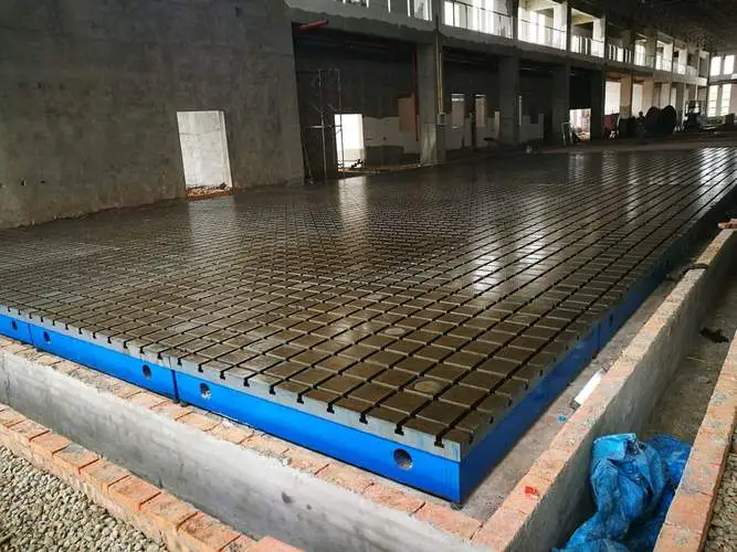 工作面采用的機床粗加工后數控機床精加工,也可通過刮研工藝,用涂色的方法進行檢驗,保證了平面的精度。工作面一般有T型槽,也可以根據要求加工長孔和圓孔,這種平臺采用的是優質純鐵鑄造而成的。廣泛應用在動力機械設備的裝配、調試、焊接、鉚焊,這種產品表面帶有T形槽,可以固定機械設備。
