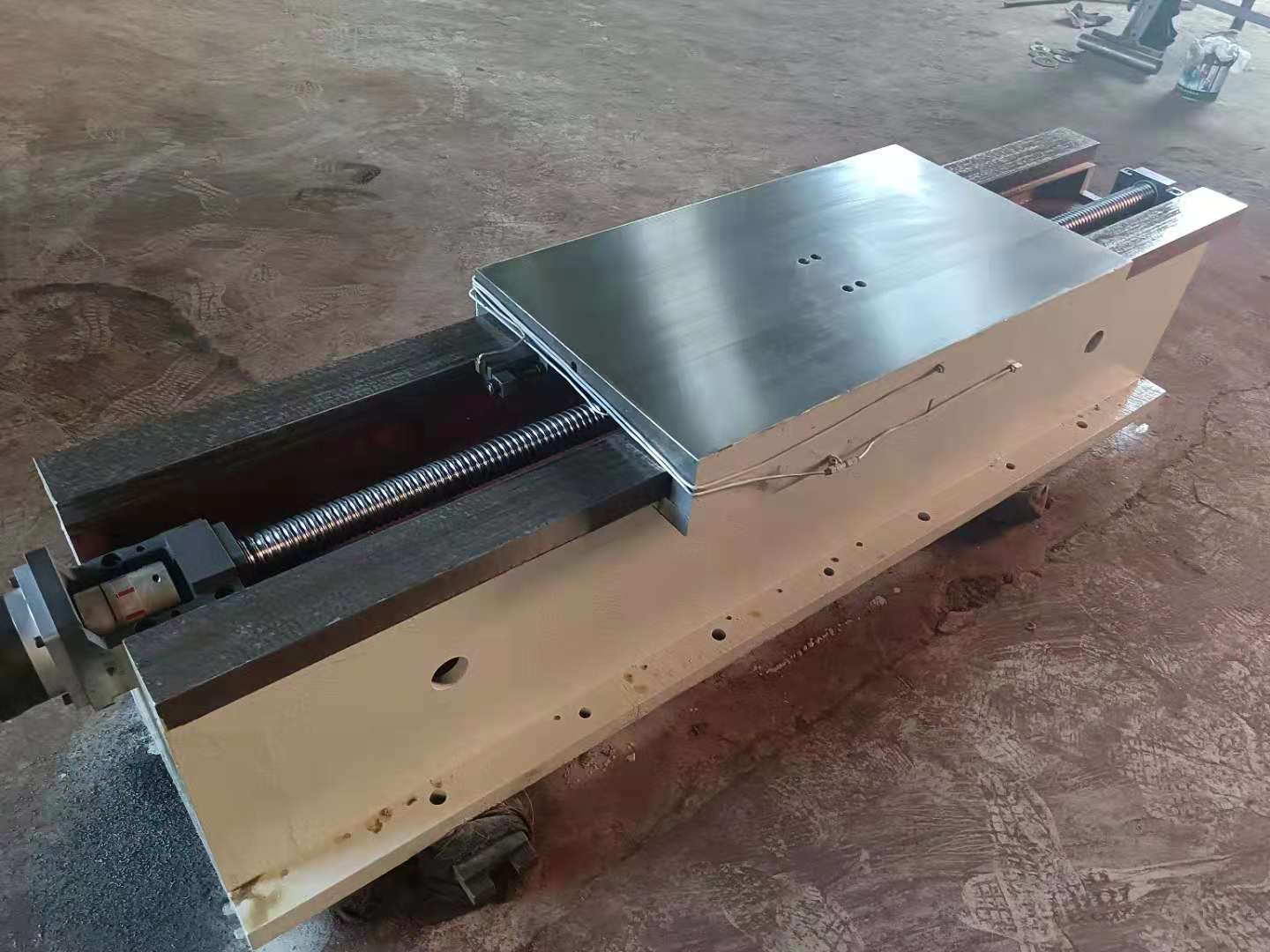 機械滑臺是組合機床,對頭銑床,對頭鉆床以及其他專用機床的提供進給動作。機械滑臺由床身,滑板,絲杠,變速箱等組成。其結構簡單,便于維修。機械滑臺工作原理是滑板在床身上做縱向運動,因其絲杠傳動,再加上變速箱的作用。可獲得快慢等多種運行速度。隨著近年來機械工業的發展。在原有的機械滑臺基礎上,演變出數控機械滑臺,即在原來機械滑臺的基礎上。把普通絲杠換成滾珠絲杠,在鑄鐵的導軌面上鑲嵌直線導軌。把變速箱電機換成伺服電機加減速機。使滑臺可以快速進退。利用滾珠絲杠和線軌獲得較高的精度。