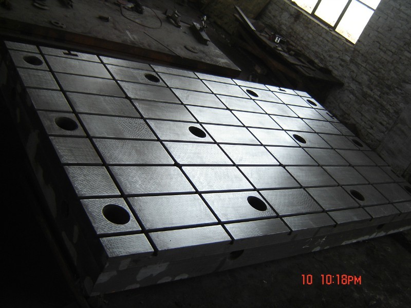 電機試驗平臺/汽車發動機試驗平臺研制開發全部采用CAD/CAM技術。加工工藝:實型模型及工裝→實型鑄造→鑄件人工時效處理→粗加工→二次人工時效→精加工→人工刮研→檢驗合格→包裝。